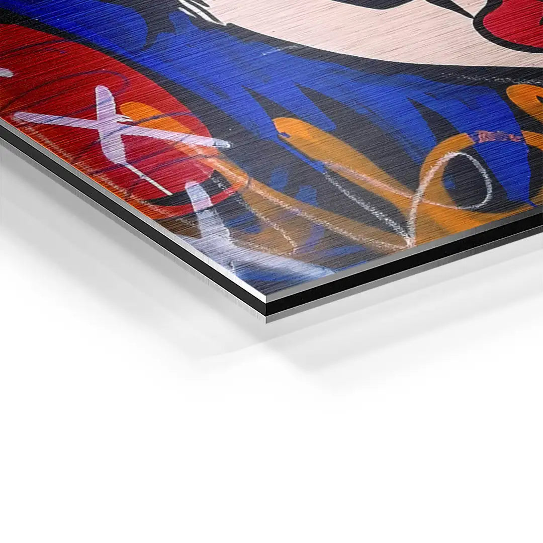 Canvas, aluminum white, aluminum silver brushed and acrylic glass