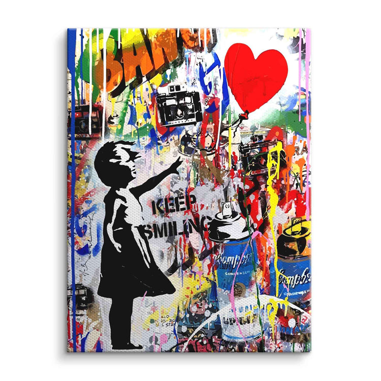 Description of the work: Banksy, Child, Girl, Heart, Keep Smiling