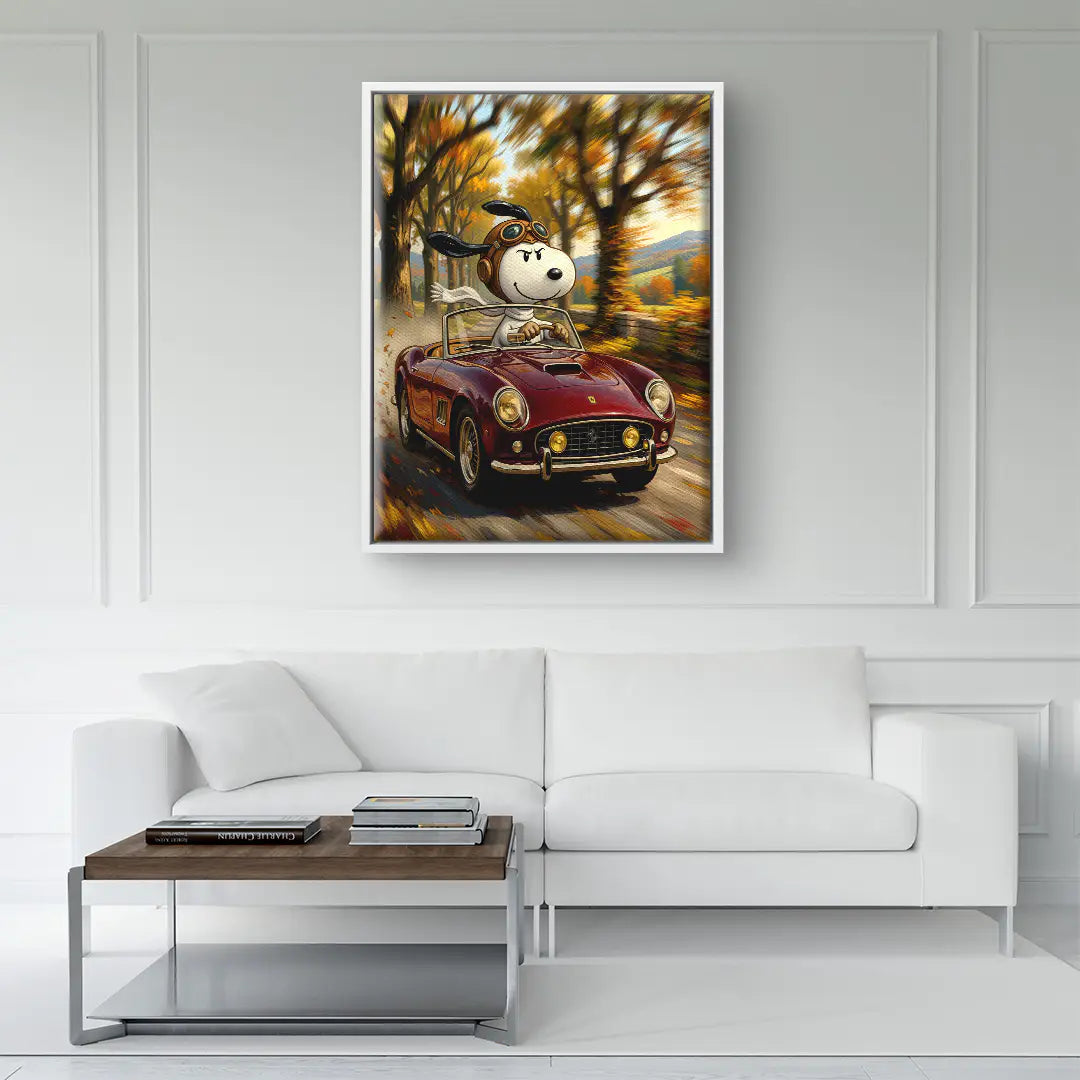 „Open Road“ von ArtMind ist ein lebendiges und charismatisches Fine Art Wandbild, das Freiheit, Lebensfreude und Abenteuerlust in einer ikonischen Szene einfängt. Mit Snoopy am Steuer eines klassischen Roadsters gleitet durch eine herbstliche Landschaft voller Bewegung und warmer Farben. Der Fahrtwind, die fliegenden Blätter und die dynamische Perspektive erzeugen ein Gefühl von Unbeschwertheit, Mut und purem Fahrspaß. Dieses Kunstwerk verbindet nostalgischen Charme mit moderner Pop Art Ästhetik und bringt Energie, Optimismus und Leichtigkeit in jeden Raum.