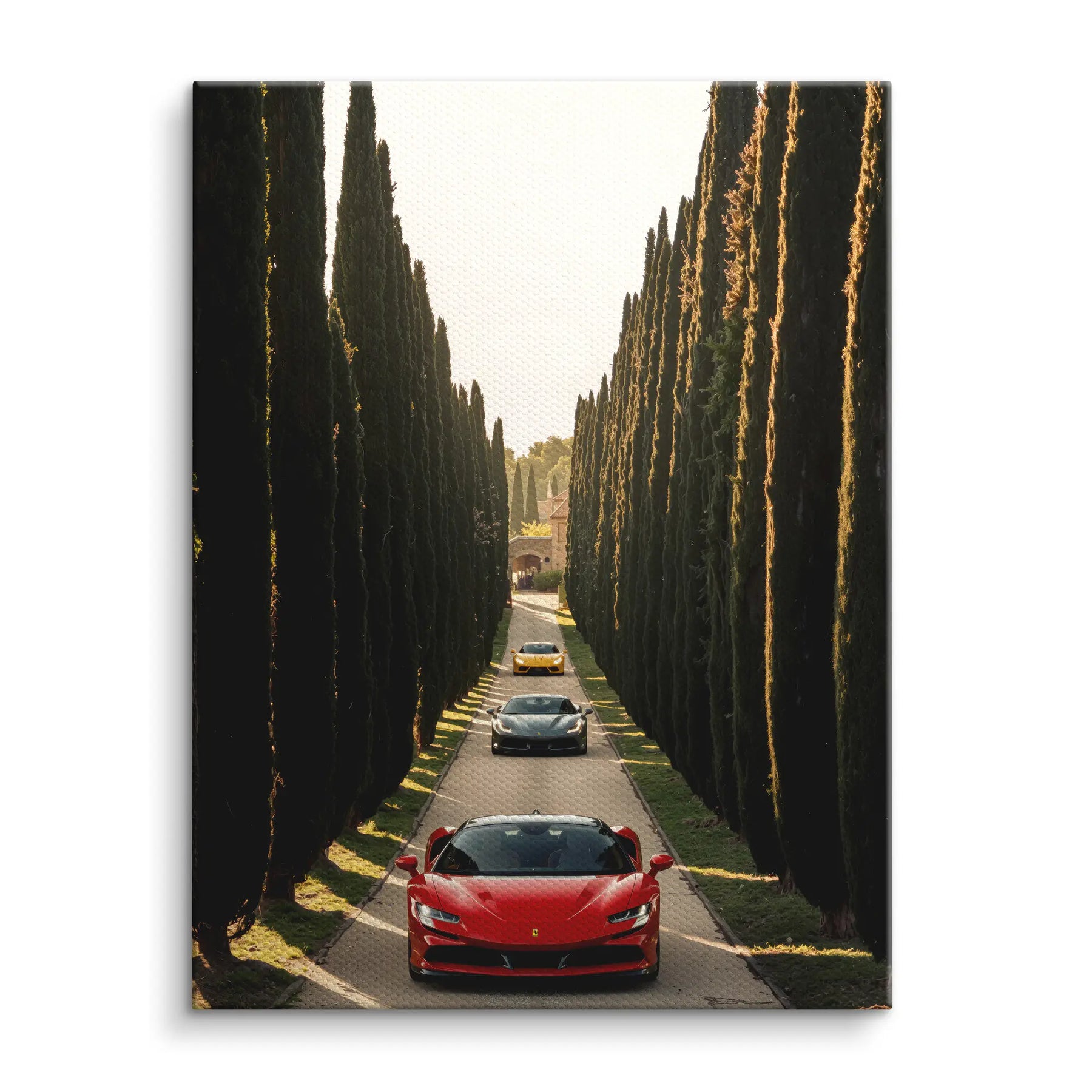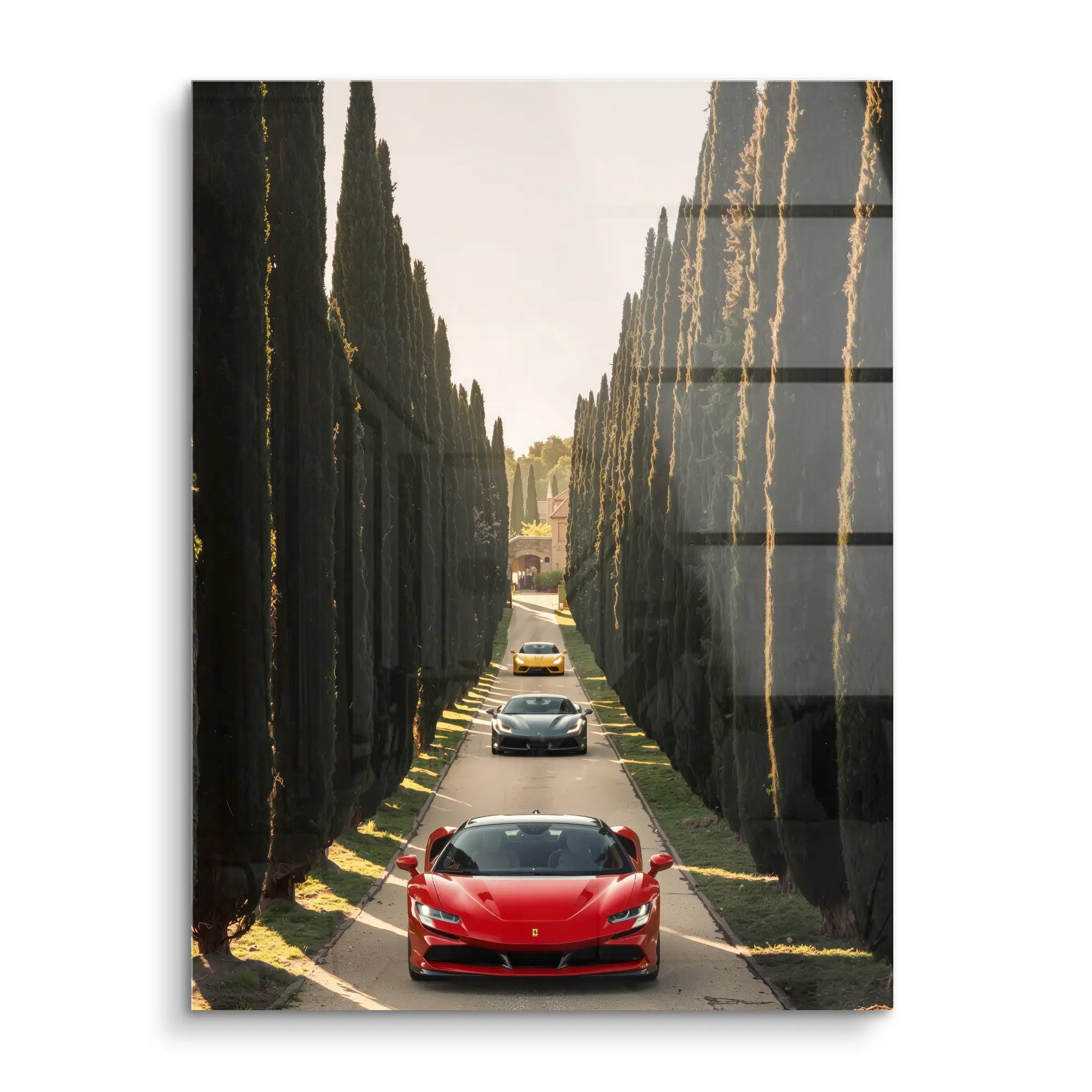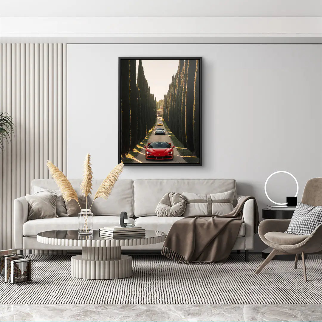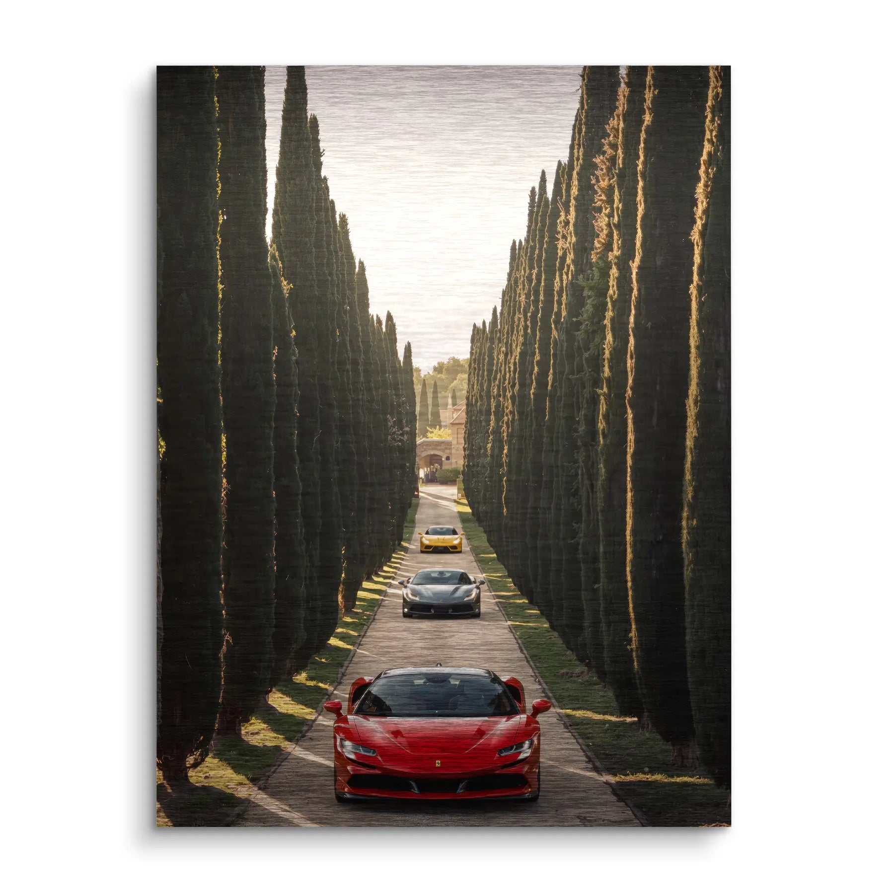 „Elite Motion“ von ArtMind ist ein kraftvolles Fine Art Wandbild, das Dynamik, Luxus und zeitlose Eleganz in einer eindrucksvollen Bildkomposition vereint. Eine perfekt ausgerichtete Allee aus hohen Zypressen lenkt den Blick auf eine Kolonne exklusiver Sportwagen, die sich ruhig und souverän durch die Szenerie bewegt. Licht und Perspektive erzeugen Tiefe, Spannung und einen klaren Fokus auf Fortschritt, Erfolg und Stilbewusstsein. Dieses Kunstwerk strahlt Kontrolle, Präzision und Selbstvertrauen aus und verleiht jedem Raum eine exklusive Atmosphäre mit moderner Ästhetik.