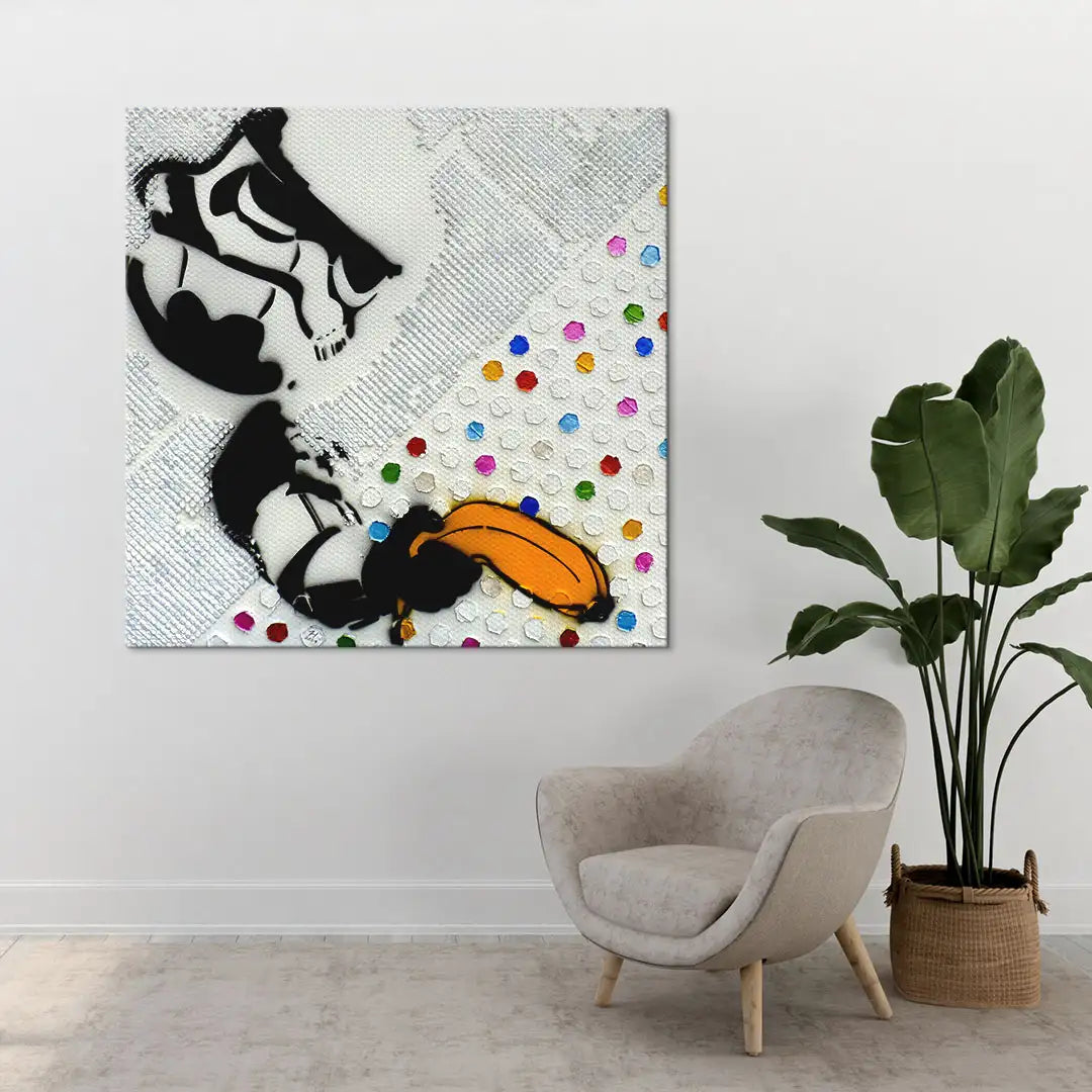 Mit dem Airbrush beherrscht er das Spiel zwischen kraftvollen Linien und sanften Übergängen, von markanten Designs bis hin zu täuschend echten Abbildungen. Durch den Siebdruck entstehen plakative Kunstwerke im lebendigen Stil der Pop Art, wobei Jochen die Vielseitigkeit nutzt, um das gleiche Motiv in verschiedenen Farben zu präsentieren und somit eine einzigartige Dynamik zu schaffen.