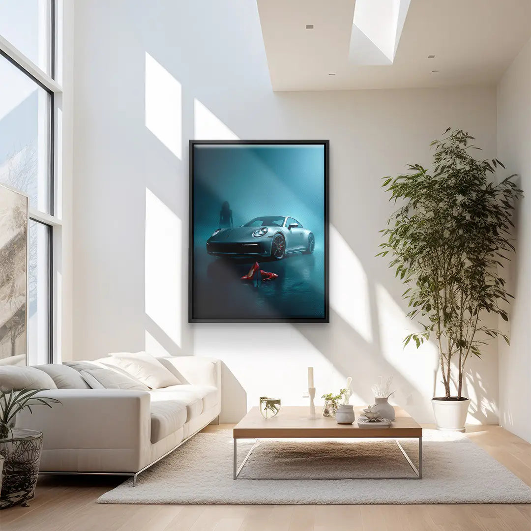 „Driven Power“ von ArtMind ist ein intensives und zugleich elegantes Fine Art Wandbild, das Antrieb, Verlangen und moderne Stärke in einer ikonischen Bildsprache vereint. Ein kraftvoller Sportwagen steht im Zentrum einer geheimnisvollen, kühlen Atmosphäre, während leuchtend rote High Heels einen bewussten Kontrast aus Sinnlichkeit und Dominanz setzen. Die reduzierte Farbwelt, das dramatische Licht und die klare Komposition erzeugen eine Spannung aus Kontrolle, Energie und Selbstbestimmung. Dieses Kunstwerk wirkt selbstbewusst, modern und emotional aufgeladen und verleiht jedem Raum eine markante Präsenz voller Charakter und Stil.