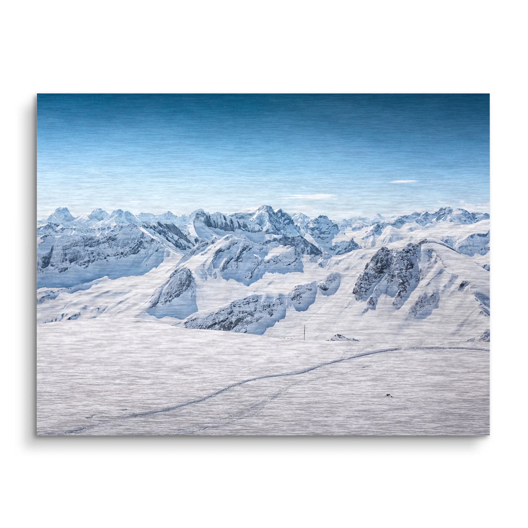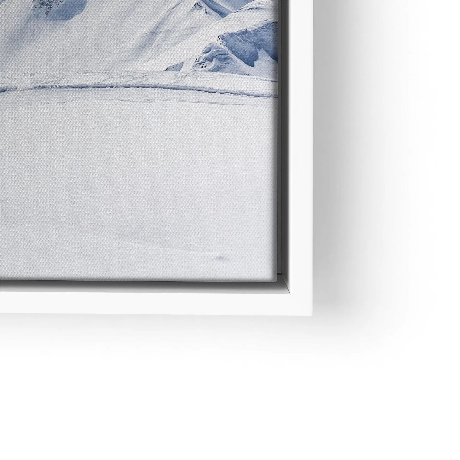 Frozen Peak von ArtMind eröffnet den Blick auf eine beeindruckende Schneelandschaft voller Klarheit und Erhabenheit. Weite, unberührte Schneeflächen führen hin zu markanten Berggipfeln, die sich kraftvoll unter einem strahlend blauen Himmel erheben. Das Zusammenspiel aus kühlem Weiß, sanften Grautönen und intensivem Blau verleiht diesem Fine Art Wandbild eine ruhige, fast meditative Ausstrahlung. Es steht für Reinheit, Stärke und die stille Größe der Natur.