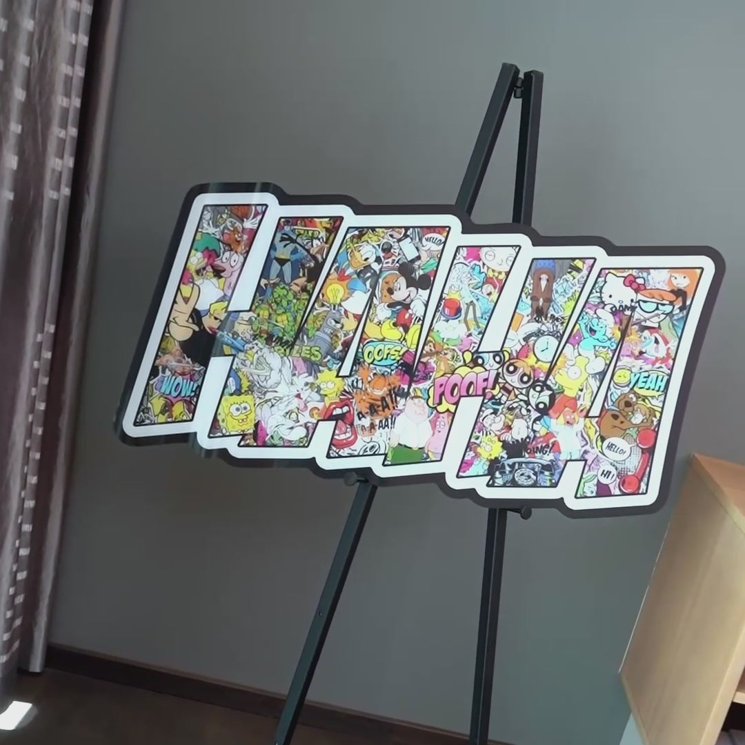 Ein visuelles Feuerwerk aus Kult-Cartoons, frechen Sprechblasen und Farben, das Kindheit, Humor und Popkultur vereint.