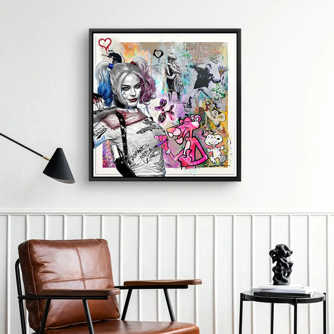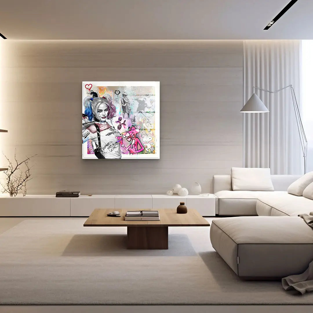 Harley Quinn gezeichnet von Pink Panther im Pop Art Stil