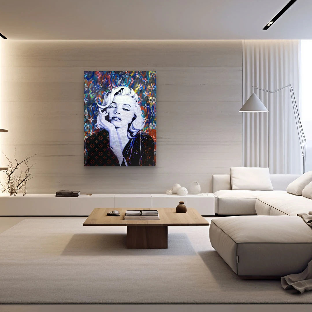 Werkbeschreibung: Eine moderne Hommage an Marilyn Monroe – stark, geheimnisvoll und voller Farbe. Pop Art trifft auf zeitlose Eleganz.
