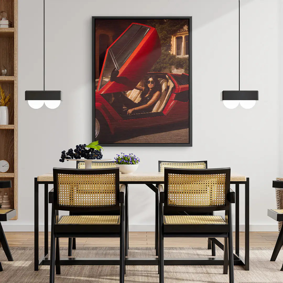 „Red Authority“ von ArtMind ist ein kraftvolles Fine Art Wandbild, das Dominanz, Selbstbestimmung und ikonischen Luxus in einer selbstbewussten Szene vereint. Der rote Supersportwagen mit geöffneter Tür wird zur Bühne für Präsenz und Kontrolle, während die souveräne Haltung der Protagonistin Stärke, Stil und Unabhängigkeit ausstrahlt. Warme Lichtakzente, edle Materialien und die intensive Farbwirkung erzeugen eine Atmosphäre von Macht, Freiheit und kompromisslosem Anspruch. Dieses Kunstwerk setzt ein klares Statement und verleiht jedem Raum eine charismatische Ausstrahlung voller Energie und Eleganz.