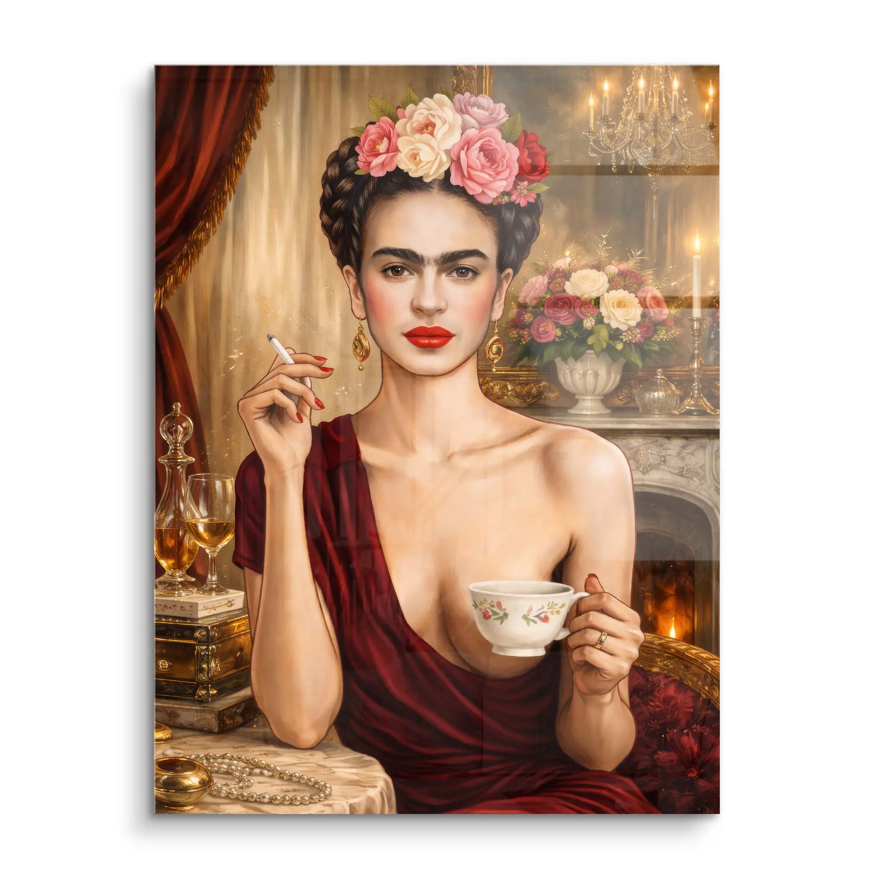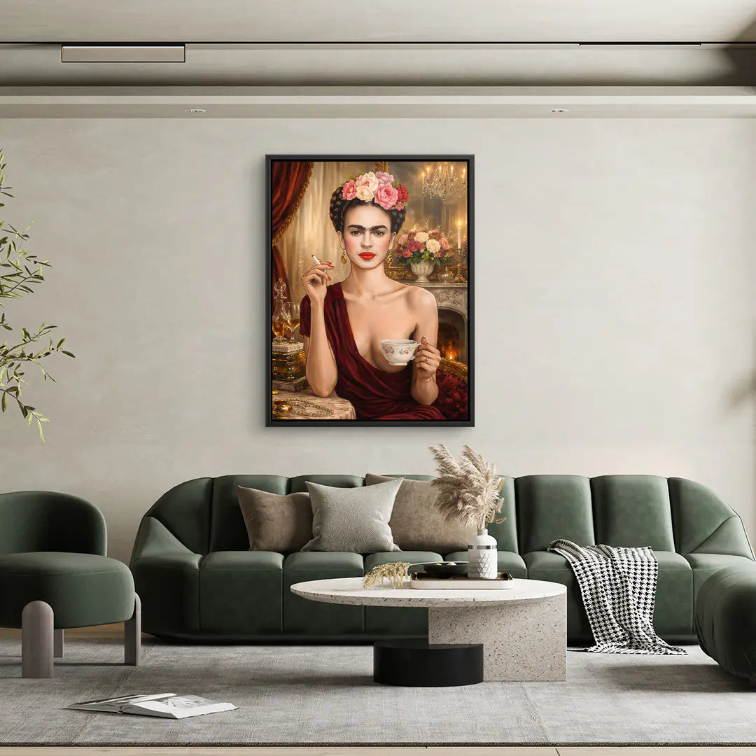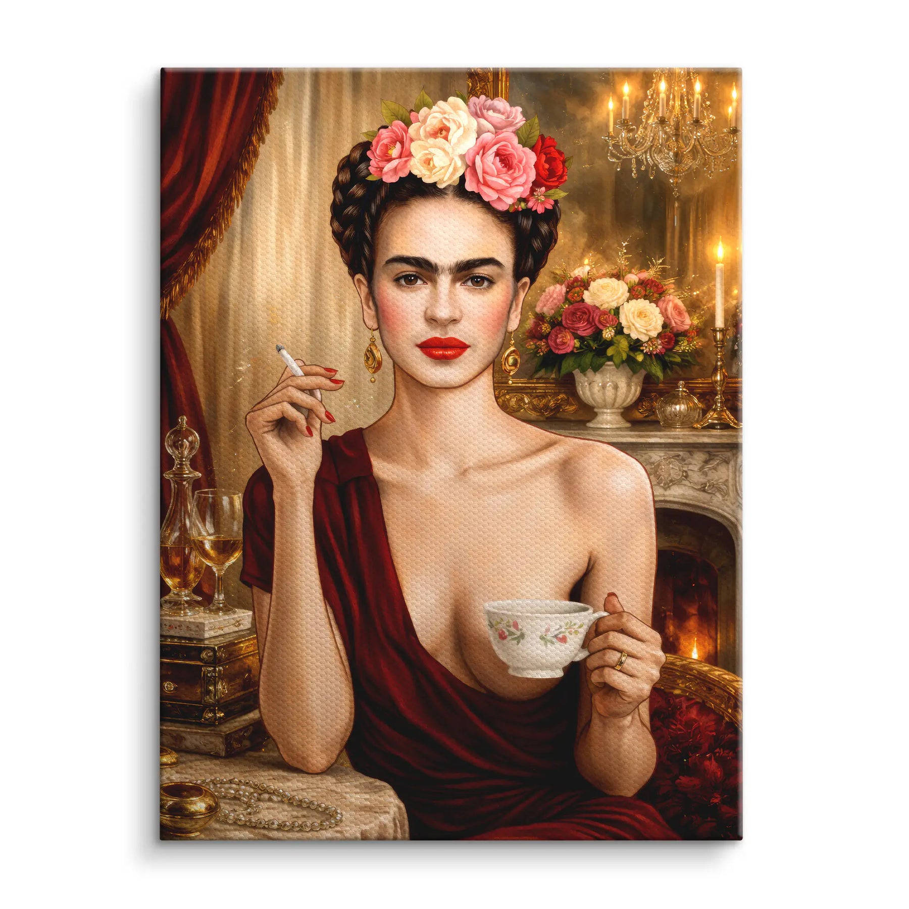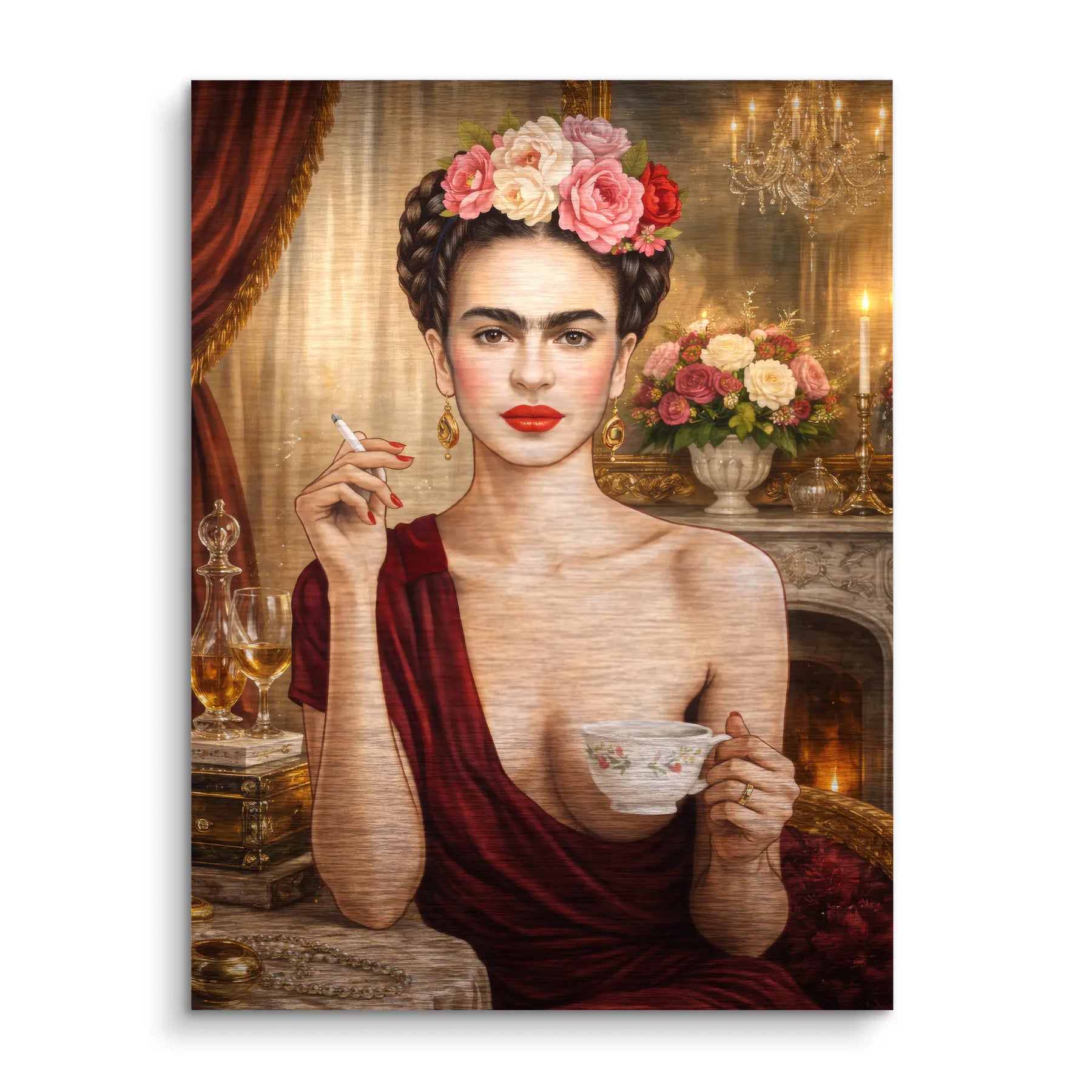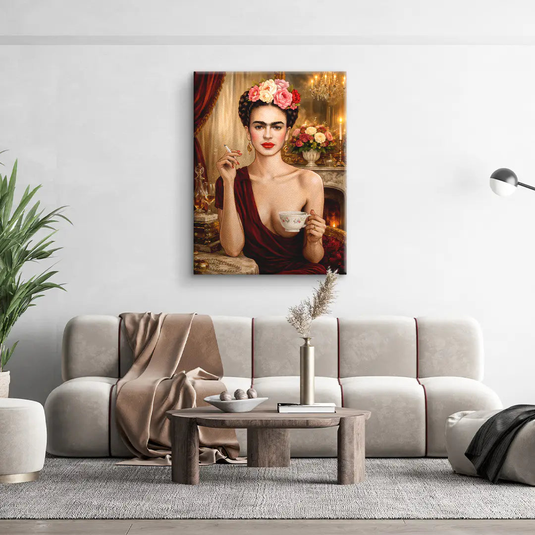 „Unapologetic“ von ArtMind ist ein kraftvolles und selbstbewusstes Fine Art Wandbild, das feminine Stärke, Eleganz und kompromisslose Persönlichkeit vereint. Der direkte Blick, die roten Lippen und die florale Krone formen ein ikonisches Porträt voller Präsenz und Ausdruck. Umgeben von warmem Kerzenlicht, edlen Stoffen und klassischen Details entsteht eine Atmosphäre aus Luxus, Sinnlichkeit und innerer Ruhe. Dieses Kunstwerk steht für Selbstbestimmung, Stilbewusstsein und den Mut, sich nicht zu erklären. Ein ausdrucksstarkes Statement für Räume, die Charakter zeigen und Individualität feiern.