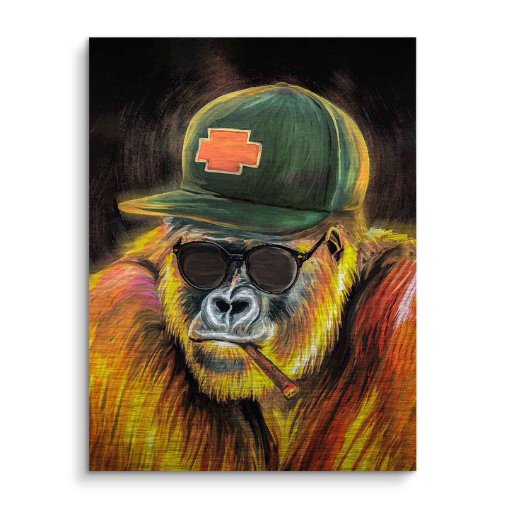 Werkbeschreibung: gelber Gorilla, Affe, Cap
